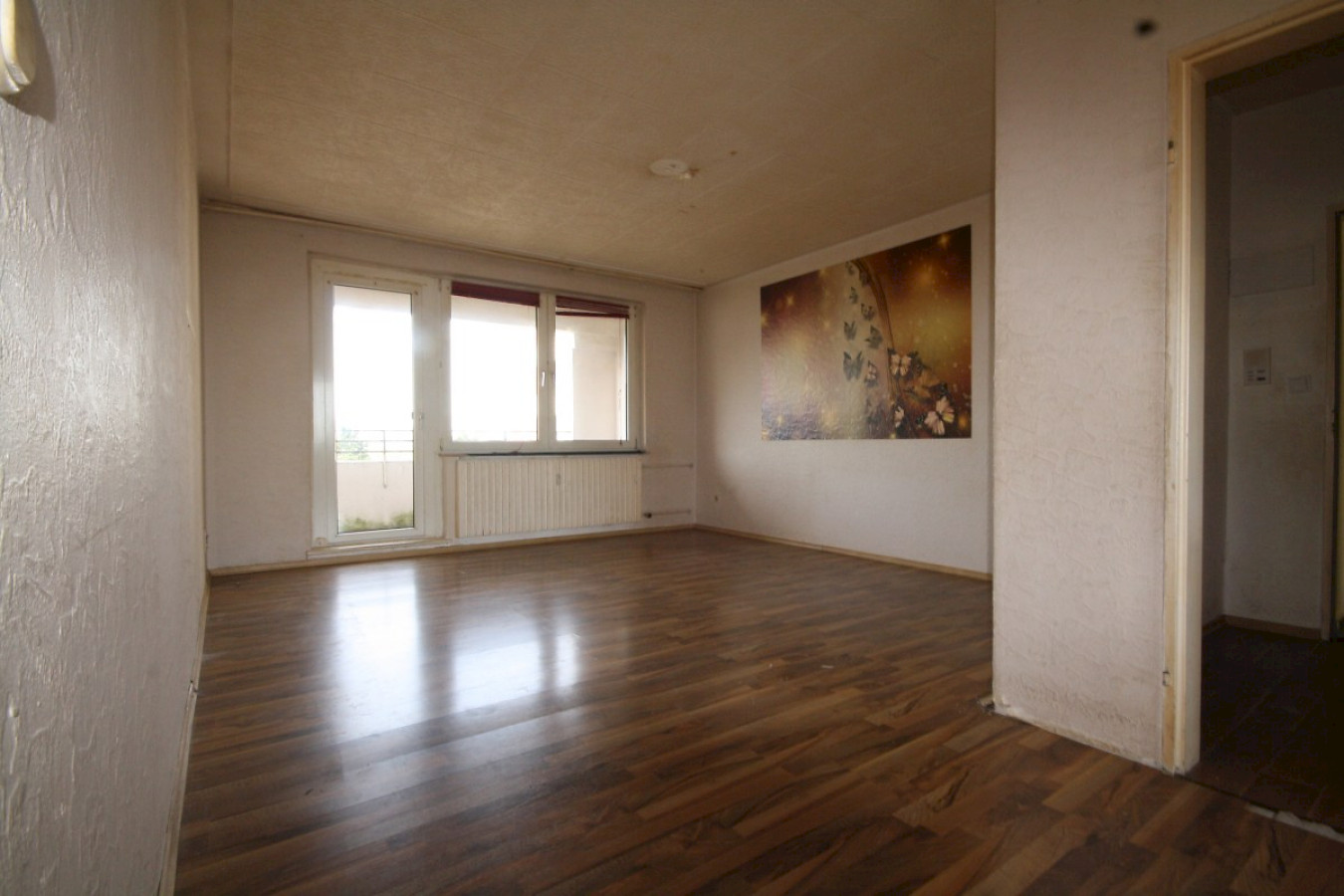 Die Wohnung ist nicht renoviert, d.h. Tapeten müssen teilweise erneuert und gestrichen werden.