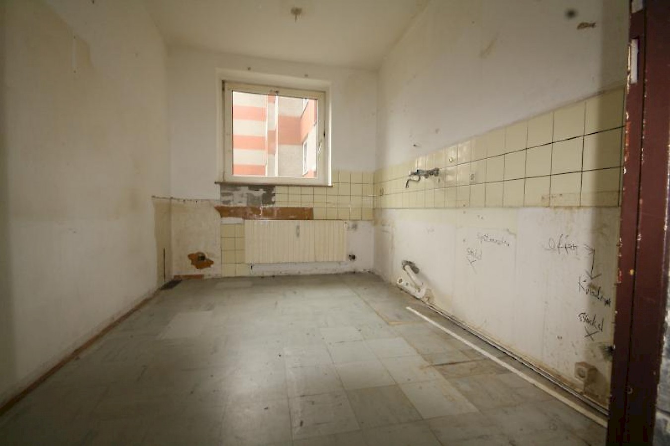 Die Wohnung ist nicht renoviert, das Bad wurde jedoch bereits saniert.