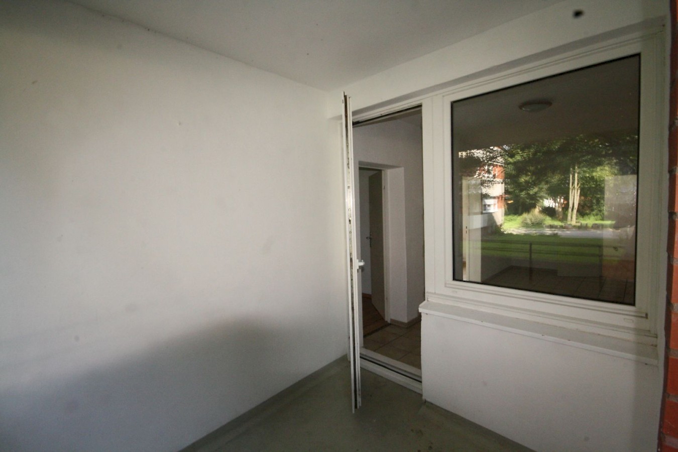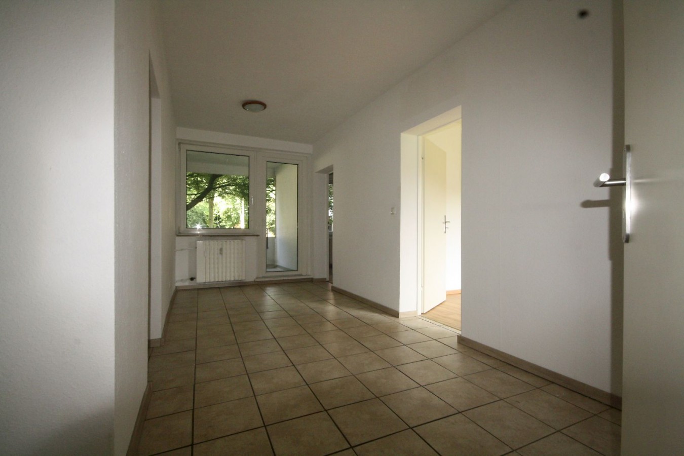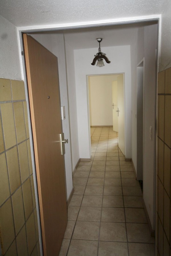 Die Wohnung ist neu renoviert, die Wände sind Raufaser Weiß, alle Böden sind in gepflegtem neuem Laminat. In Flur, Diele und im Bad sind Fliesen verlegt worden.